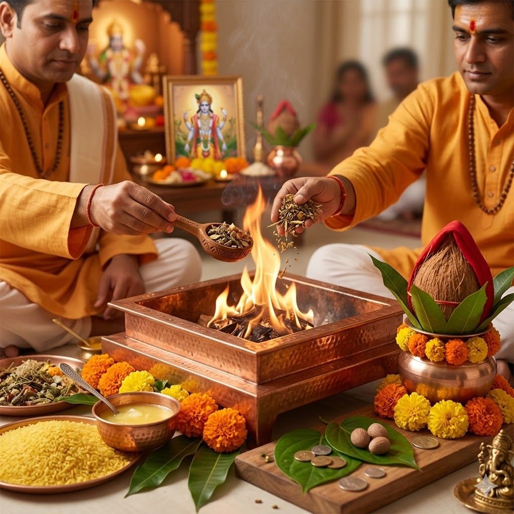 4. Medicinal Herbs/Resins: Guggul (resin), Sandalwood powder, Loban, Cloves (Laung), Cardamom (Elaichi).