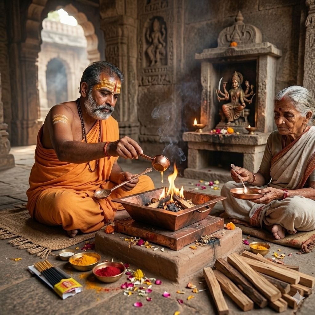 4. Medicinal Herbs/Resins: Guggul (resin), Sandalwood powder, Loban, Cloves (Laung), Cardamom (Elaichi).